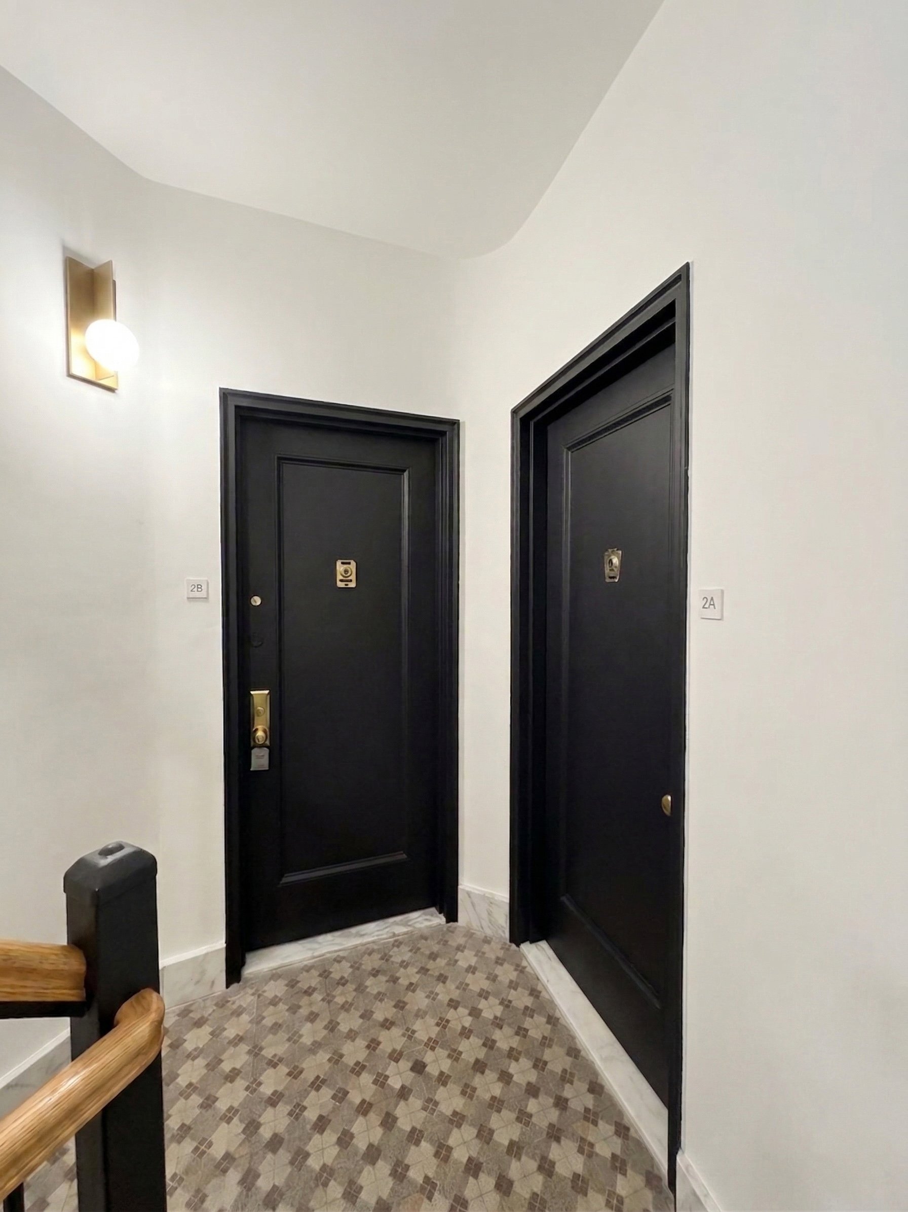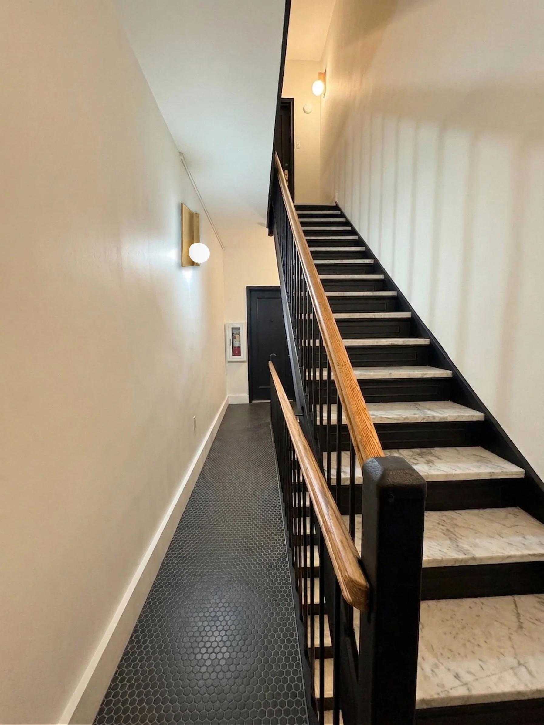 The renovation of the 1930, 5-story walk-up HDFC co-op building is a comprehensive structural and aesthetic revitalization designed to modernize the building’s presence and to enhance the daily experience for long-time residents. Located in the heart of the Chelsea neighborhood of Manhattan, this multi-phase initiative focuses on the high-traffic, first impression areas of the property, including the restoration of front and back façades, entry vestibule upgrades, and public hallway refresh spanning all residential floors to integrate supplemental structural elements, and replace dated finishes with a contemporary palette and new light fixtures.