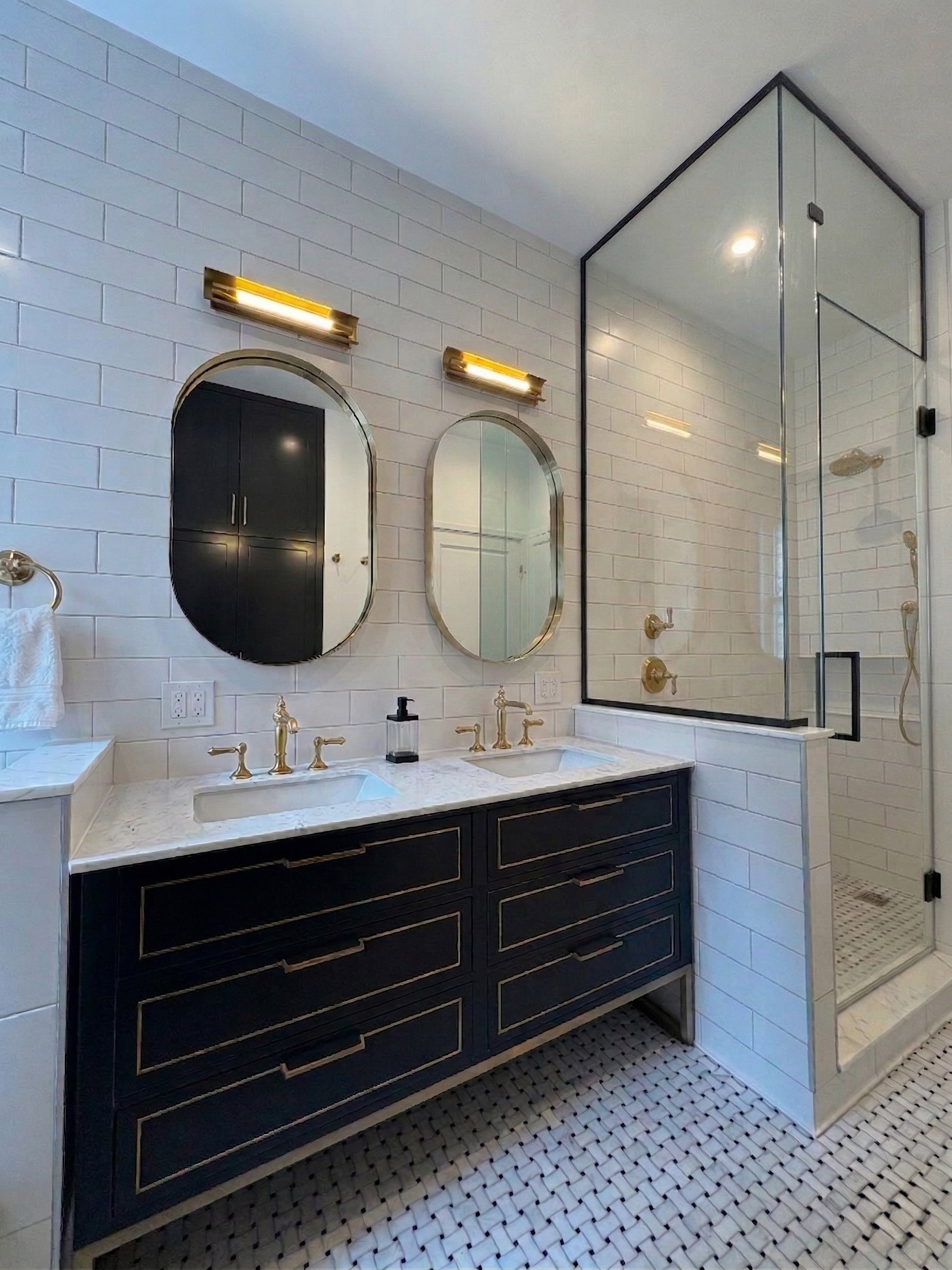 The project located in the Soho – Cast Iron Historic District of New York, NY consists of the renovation of the existing primary bathroom, the conversion of existing laundry room into a full bathroom, the addition of a powder room and relocation of washer/dryer as well as the the addition of a new built-in media center in the living room and other cosmetic improvements.